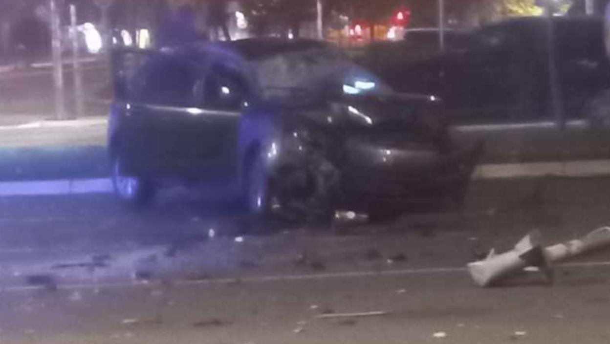 Prve fotografije jezive saobraćajke na Novom Beogradu: Zakucali se u semafor, vozilo potpuno uništeno (FOTO)