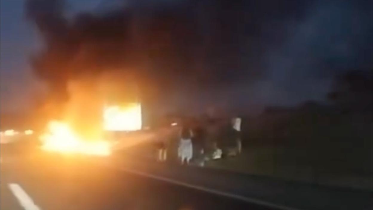 Vatra progutala celo vozilo na auto-putu: Jezivi prizori kod Ražnja, isplivao snimak sa lica mesta