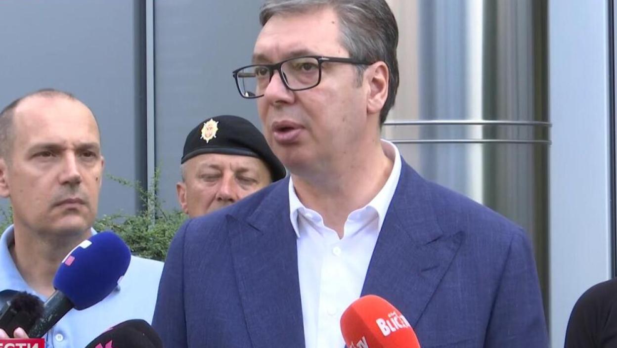 Predsednik Srbije Aleksandar Vučić obraća se medijima nakon posete povređenom pripadniku Žandarmerije u današnjem terorističkom aktu na Dedinju.