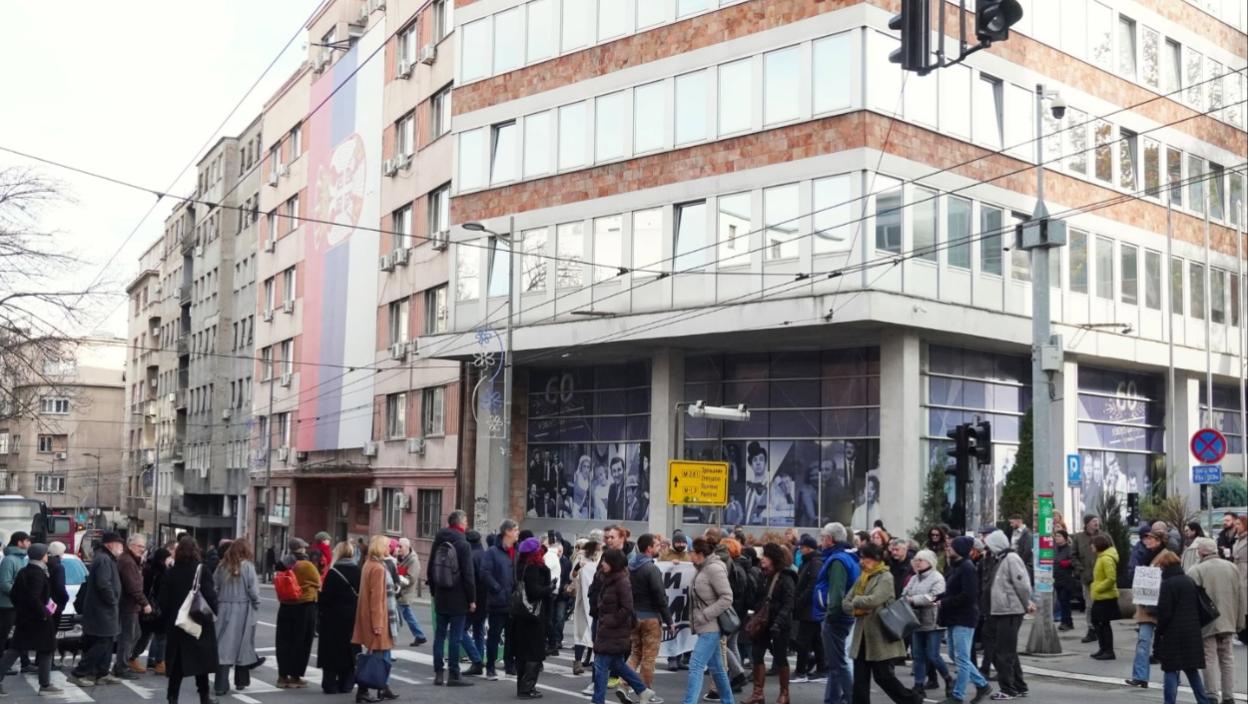 Saobraćaj je bio blokiran i u Takovskoj ulici ispred zgrade Radio-televizije Srbije.
