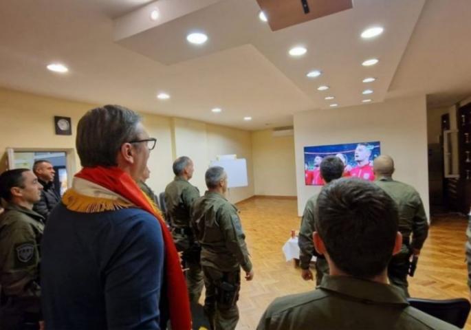 Predsednik Srbije Aleksandar Vučić prati meč Svetskog prvenstva u Kataru Srbija Brazil.