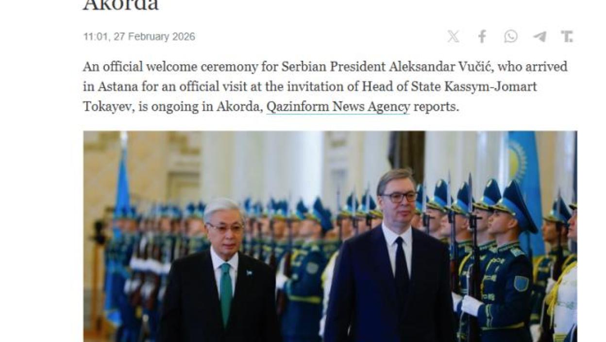 "The Times of Central Asia" takođe je objavio vest o Vučićevoj poseti Astani, naglašavajući da Kazahstan planira da dodeli Vučiću Orden Zlatnog orla, najviše državno odlikovanje zemlje.