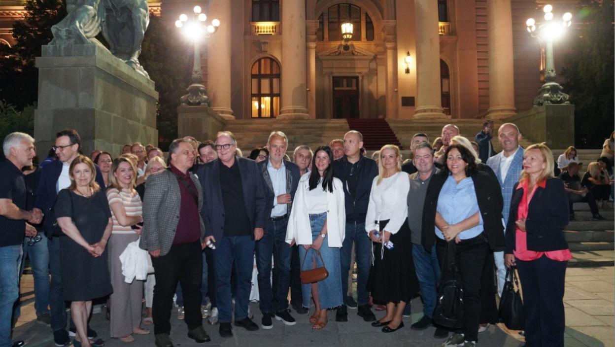 Ministri u Vladi i poslanici SNS: Ispred Skupštine sa pristalicama i građanima