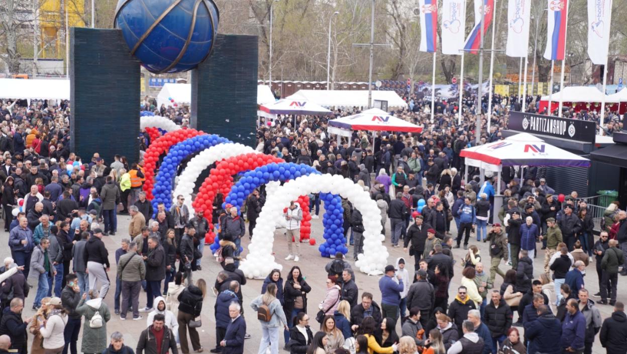 Sat vremena pre skupa ispred Arene je ogromna gužva. Veliki broj ljudi se kreće ka ulazima u halu, gde će u 16 časova početi skup.