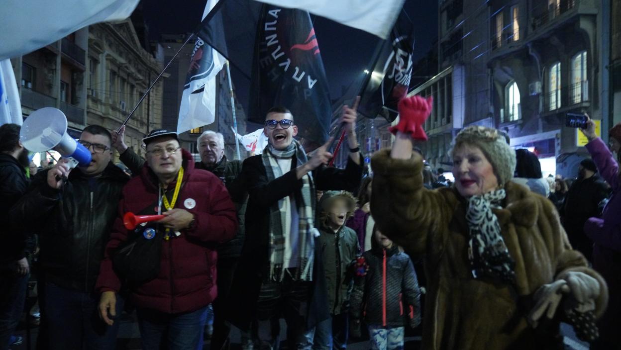 Nakon okupljanja ispred Rektorata krenuli su ka Hramu Svetog Save da "prelome pogaču", a poneli su i žito, i sve su to uradili u noćnim satima, uobičajenom terminu za blokaderske performanse, odnosno oko 20.30 časova.