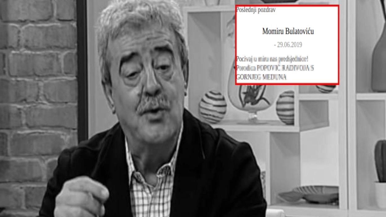 Poslednji ispraćaj: Poznato VREME I MESTO SAHRANE MOMIRA BULATOVIĆA