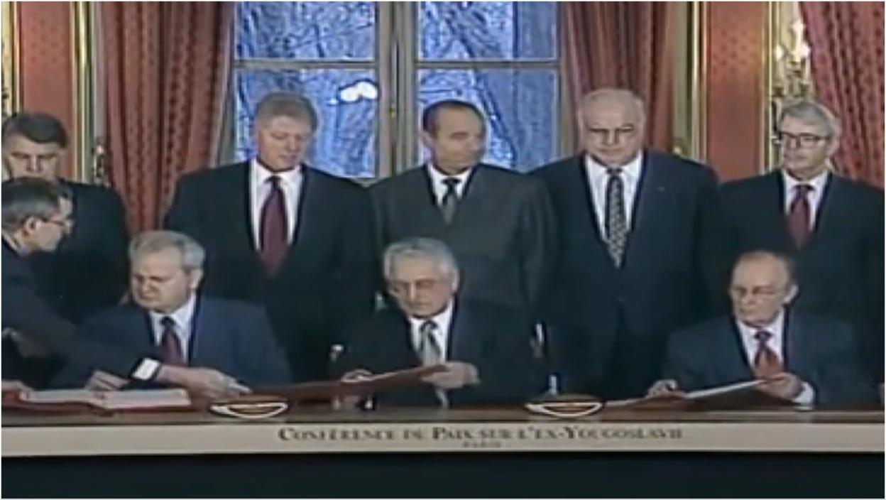 Opšti okvirni sporazum za mir u Bosni i Hercegovini, poznat kao Dejtonski sporazum, zvanično je potpisan pre 29 godina, 14. decembra 1995. godine, u Jelisejskoj palati u Parizu. Sporazum, koji je prethodno 21. novembra 1995. godine parafiran u Dejtonu, po okončanju pregovora, potpisali su Alija Izetbegović, Franjo Tuđman i Slobodan Milošević, kao predstavnici BiH, Hrvatske i SR Jugoslavije. Formalno, Milošević se tada nalazio na poziciji predsednika Srbije.