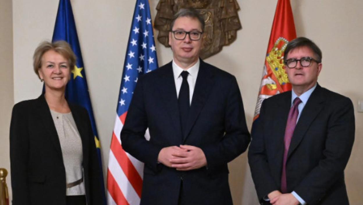 Predsednik Republike Srbije Aleksandar Vučić sastao se sa pomoćnikom američkog državnog sekretara za evropska i evroazijska pitanja Džejmsom O'Brajanom i izvršnom direktorkom Evropske službe za spoljne poslove za Evropu, Angelinom Ajhorst.