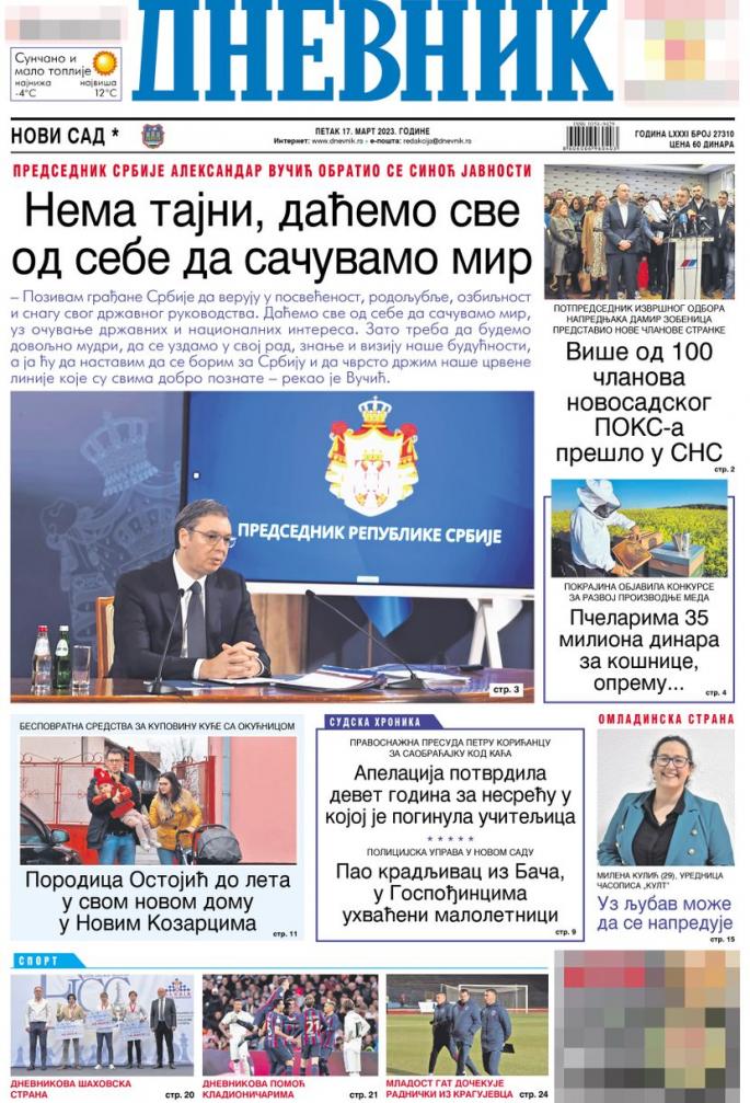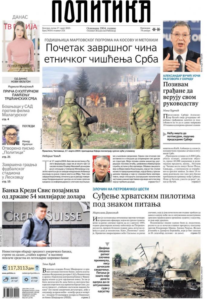 Prelistavanje dnevnih novina za 17. mart 2023. godine