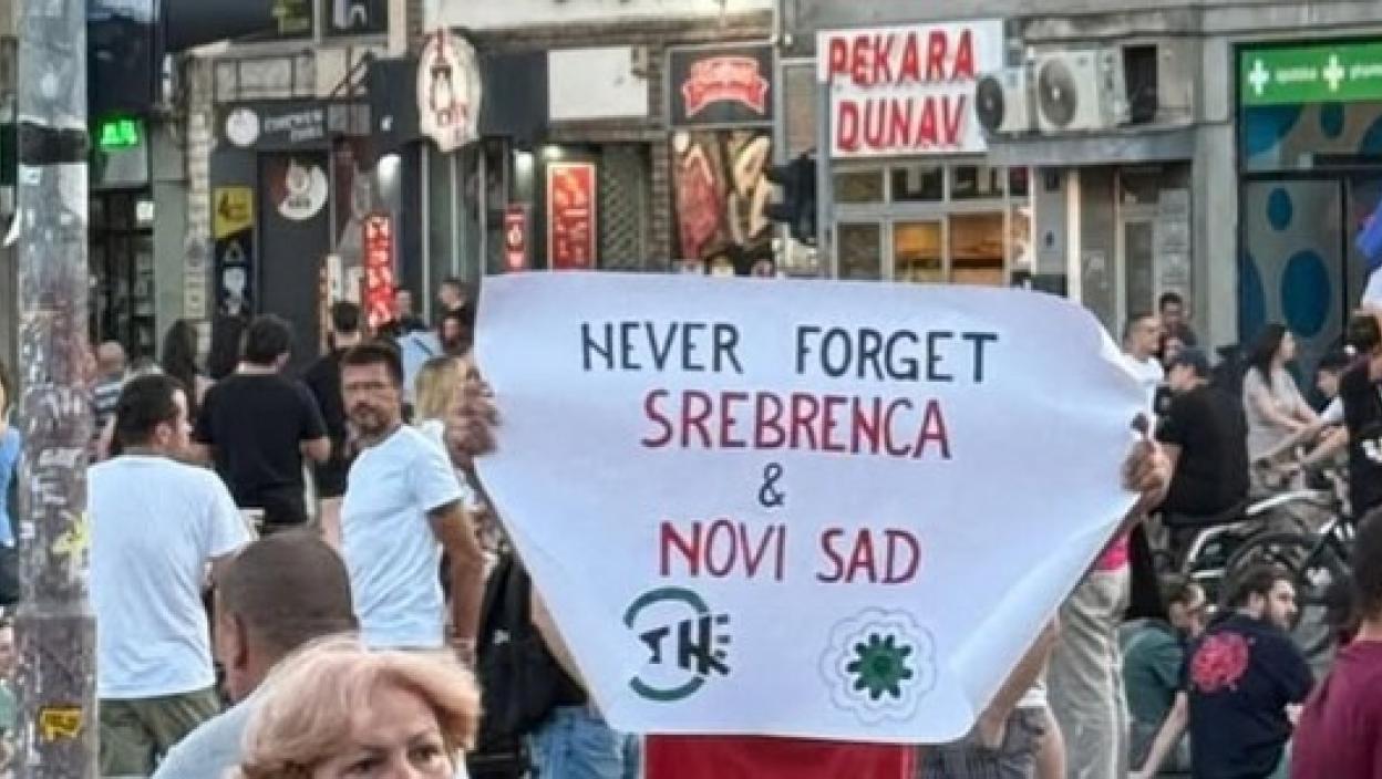 Na jednoj od lokacija, muškarac je podigao transparent sa porukama "Never forget Srebrenica" i "Novi Sad", što je doživljeno kao otvorena provokacija i još jedan dokaz antisrpske politike koju, kako mnogi tvrde, zastupaju organizatori blokada.