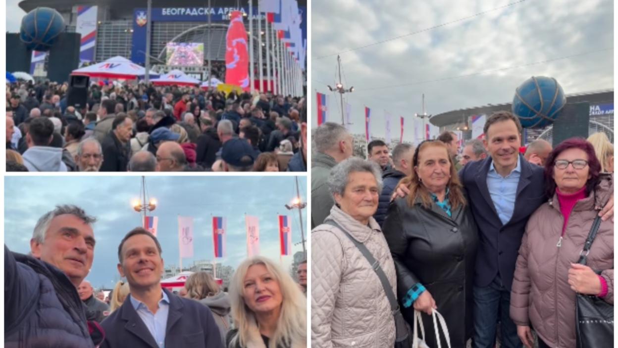 "Današnje slike iz Beogradske arene su slike ljubavi prema svojoj zemlji, ponosa, razumevanja svih mera koje su nas dovele do gornjeg dela lestvice u Evropi po ekonomskom rastu, rada, truda i želje da svi živimo u zemlji dostojnoj čoveka i porodice", poručio je prvi potpredsednik Vlade Srbije i ministar finansija Siniša Mali.