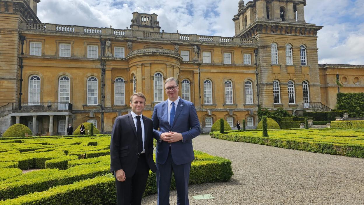 Predsednik Srbije, Aleksandar Vučić, danas se sastao sa predsednikom Francuske, Emanuelom Makronom, u okolini Londonu.