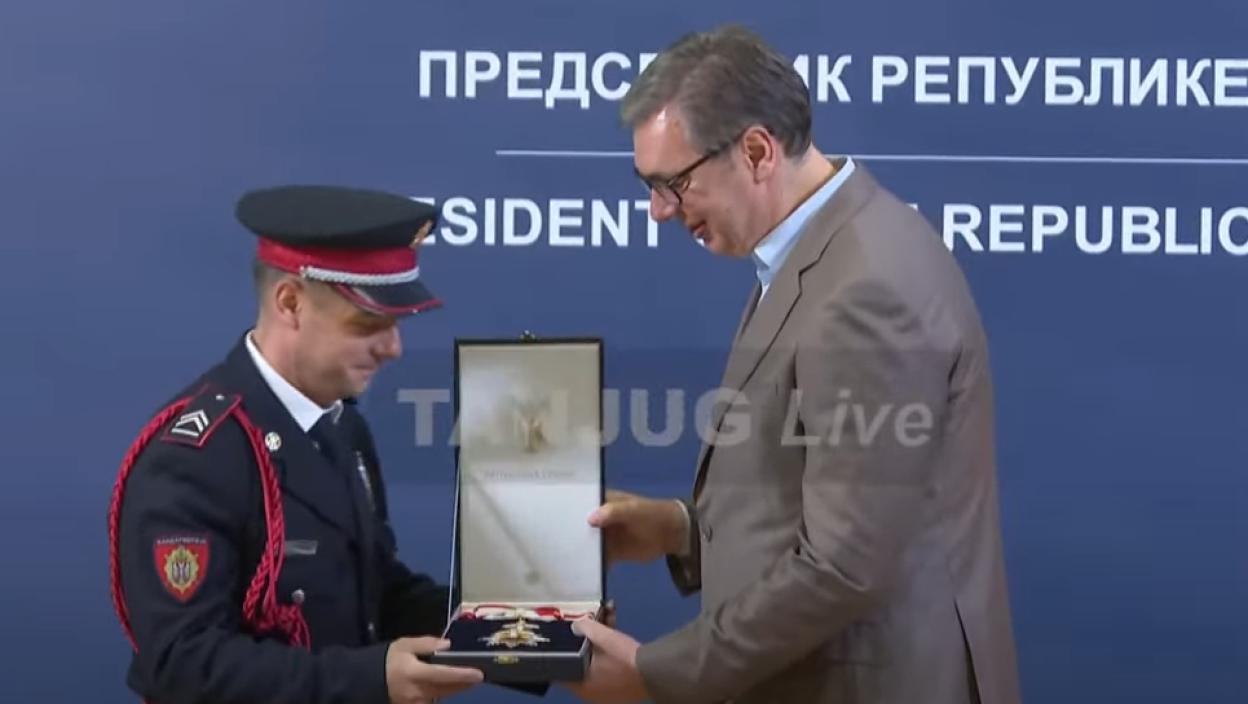 Predsednik Aleksandar Vučić uručio je odlikovanje pripadniku Žandarmerije Milošu Jevremoviću.