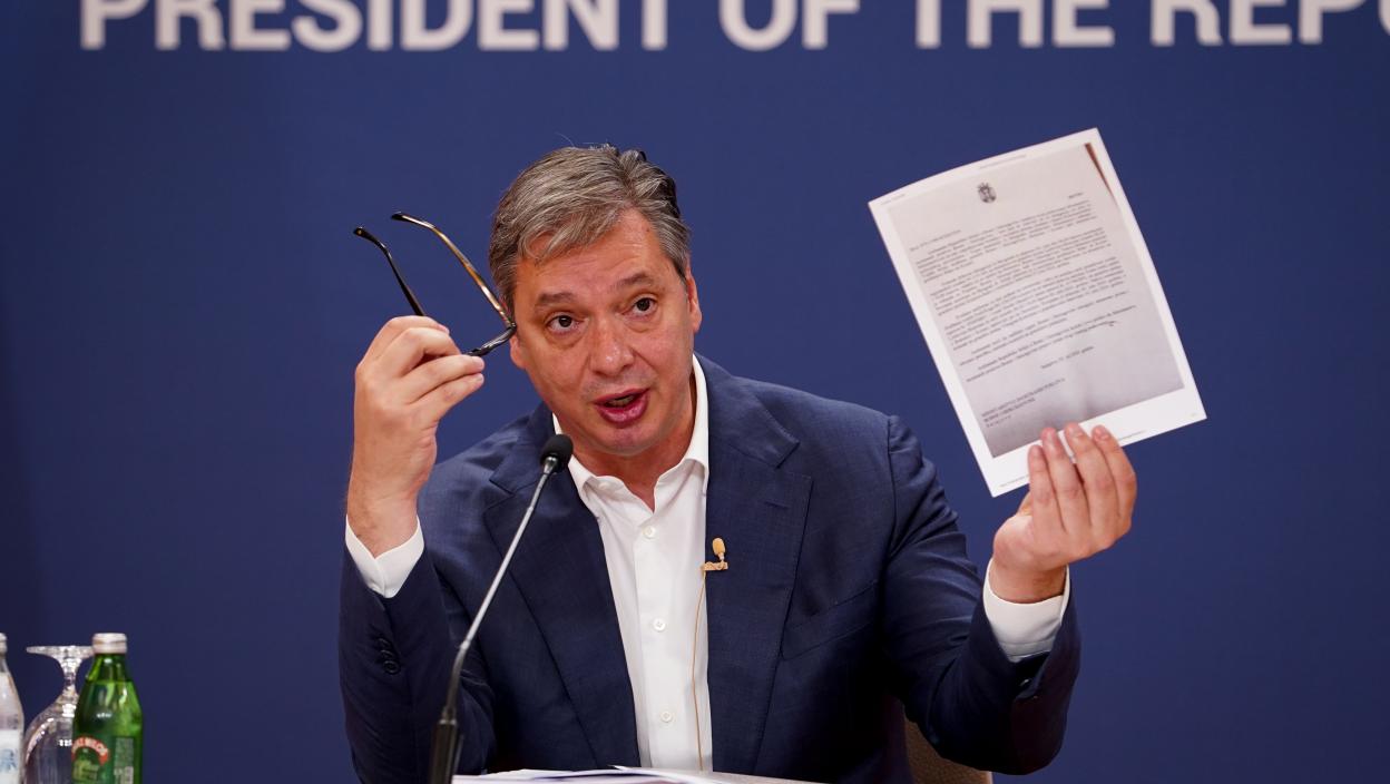 Predsednik Srbije Aleksandar Vučić obraća se medijima iz Palate Srbija. On je pročitao svedočenje vojnika bošnjačke nacionalnosti o zverstvima Nasera Orića.