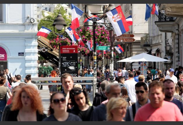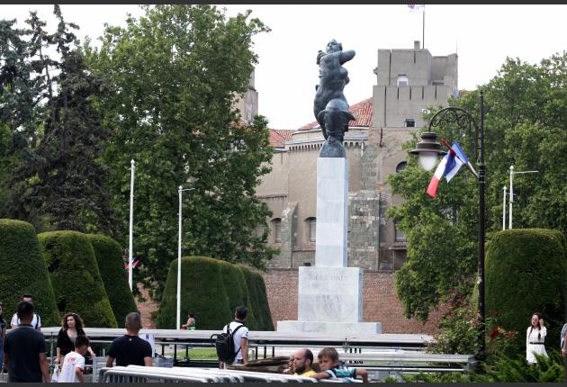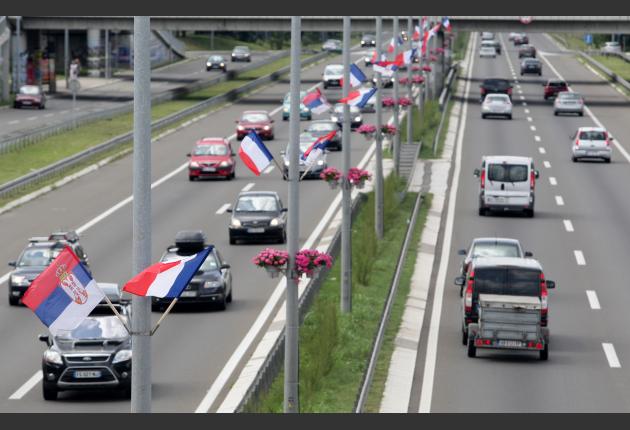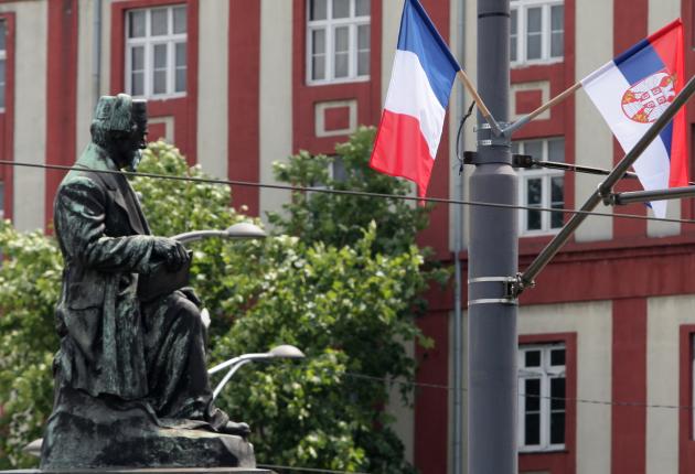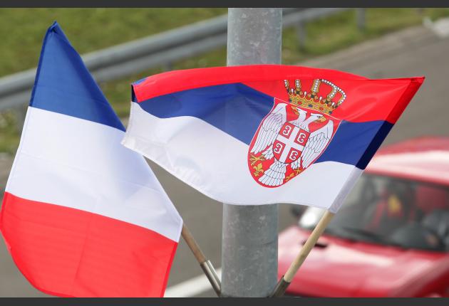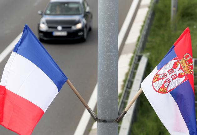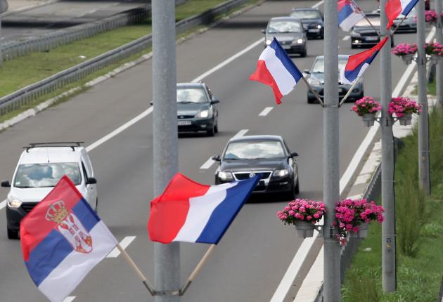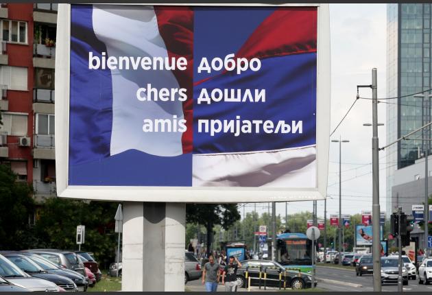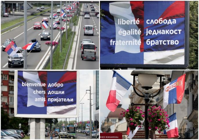 Postavljeni su i bilbordi na kojima se vide srpska i francuska zastava i na kojima na srpskom i francuskom jeziku piše "Dobro došli prijatelji" i "Sloboda, jednakost, bratstvo".