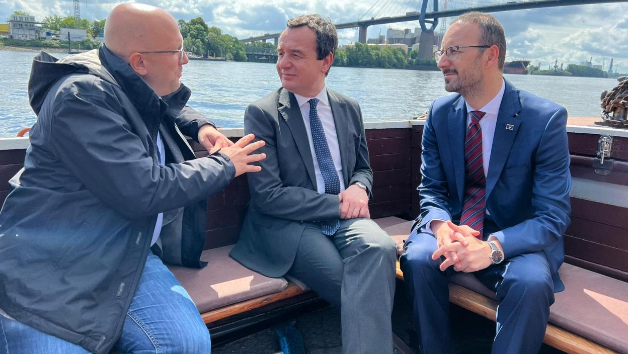 Zajedno sa Kurtijem u Hamburgu su i ministar za povratak i zajednice Nenad Rašić i zamenica ministra kulture, omladine i sporta Daulina Osmani.