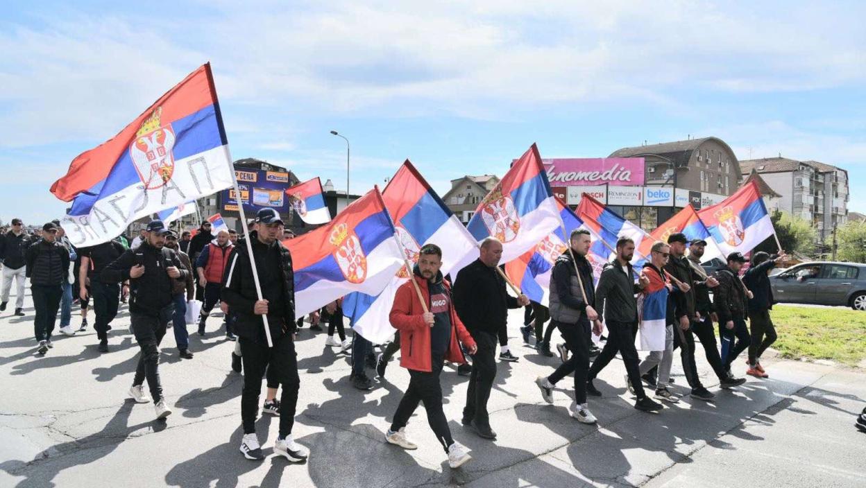Oni nose zastave Srbije, a na početku kolone je velika zastava sa mapom AP Kosovo i Metohija, na kojoj piše "Nema predaje". Kolonu obezbeđuju pripadnici policije.