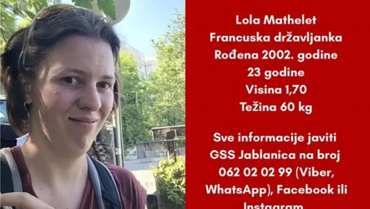 Gorska služba spašavanja Jablanica objavila je da tragaju za 23-godišnjom francuskom državljankom Lolom Mathelet koja je nestala u Bosni i Hercegovini.