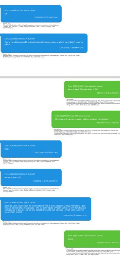 To proizilazi iz transkripta poruka koje su izuzete iz telefona Vesne Medenica kada je uhapšena, a koje BORBA ekskluzivno objavljuje.