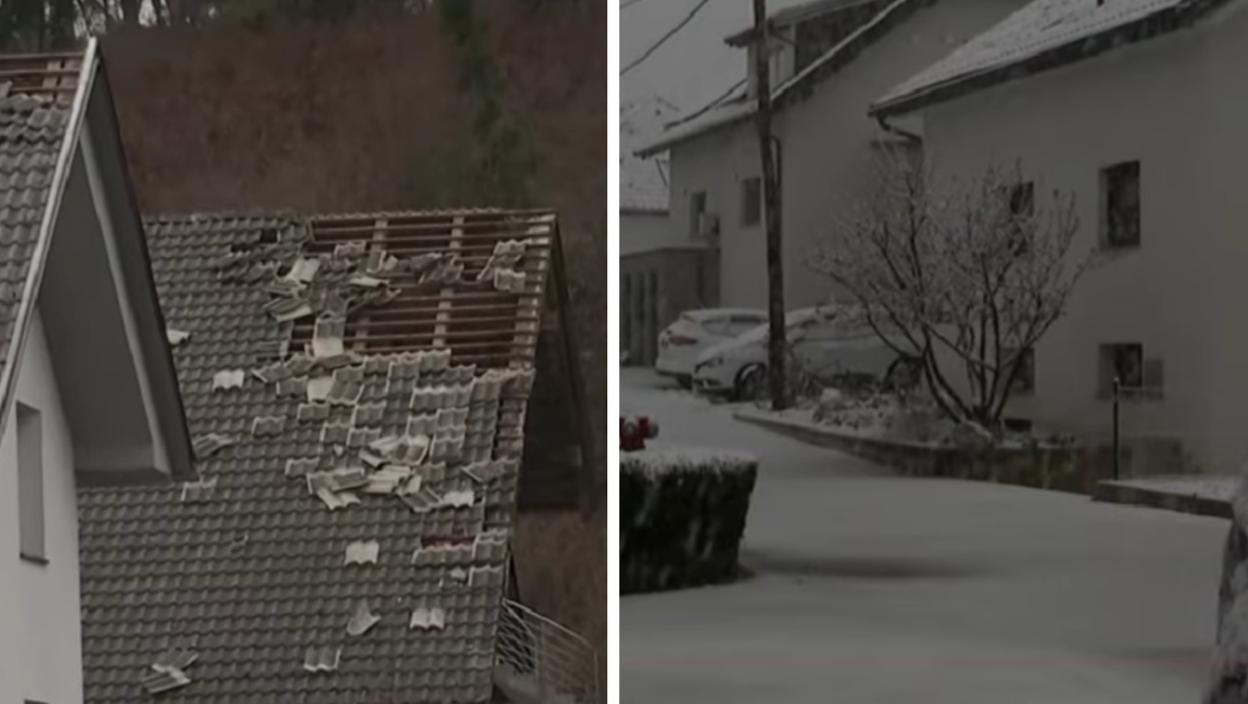 Vetar čupao stabla i krovove, delovi zemlje se i zabeleli: Zbog oluje u Sloveniji popaljeni alarmi (VIDEO)