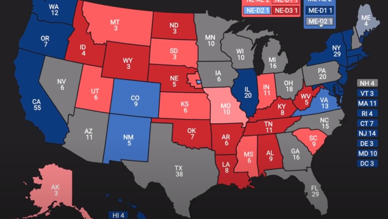 Poznata je podela država članica SAD na "crvene države", u kojima se uvek glasa isključivo za republikansku stranku, zatim na "plave države", u kojima većinu glasova odnosi demokratska stranka, i tzv. "kolebljive države", u kojima se nikad sa sigurnošću ne može utvrditi ko će biti pobednik. Baš te neodlučne države mogu biti presudne i mogu odlučiti sledećeg američkog predsednika.
