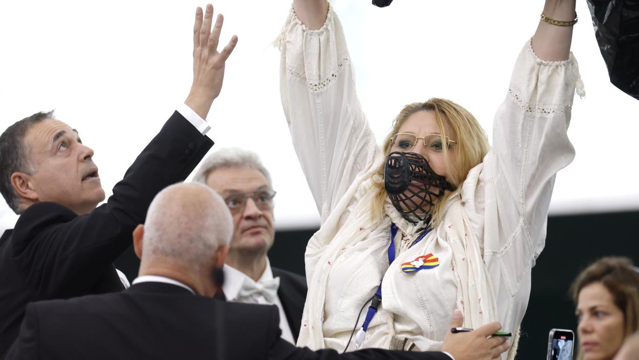 NEVERICA Skandal na sednici Evropskog parlamenta: Rumunska poslanica sa BRNJICOM na licu i IKONOM iznad glave izvedena iz sale (VIDEO)