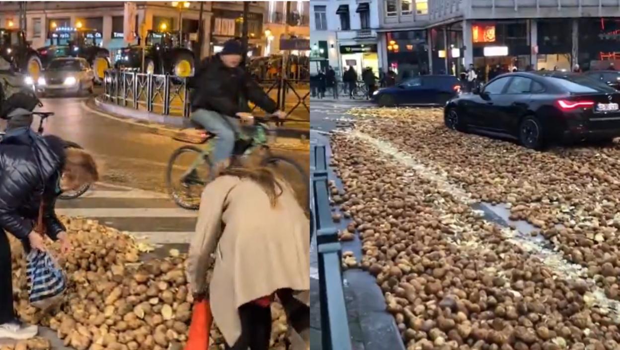 Naime, tokom samih protesta, poljoprivrednici su stigli u centar Brisela traktorima i kamionima i tom prilikom su istovarili velike količine krompira na ulice, što su demonstranti iskoristili za sukob sa policijom.