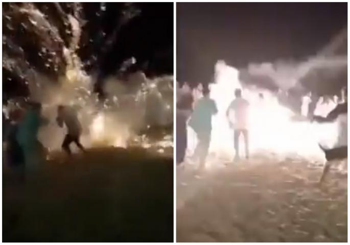 Na uznemirujućem snimku se može videti gomila ljudi koji stoje u oblasti i gledaju vatromet na nebu iznad njih.