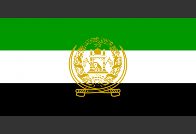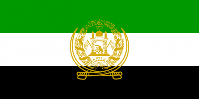 - Zastava Avganistana sastoji se od tri jednaka dela, sa crnom, crvenom i zelenom bojom postavljenom s leva na desno. Širina svake boje je polovina njene dužine, a u čijem središtu se nalaze nacionalna obeležja. Nacionalna obeležja Avganistana sastoje se od amblema mihraba i džamije sa minaretima u beloj boji - dva ugla na kojima se nalaze dve zastave, i zapisa na gornjoj sredini svetom frazom "Nema Boga osim Alaha i Muhamed je njegov poslanik, i Alah je najveći." Ovo je upisano iznad zraka izlazećeg sunca, a u donjem delu grba, ispisana je godina 1919. u solarnom kalendaru, dok je reč "Avganistan" okružena sa dve strane snopovima pšenice - piše u Zakonu o državnim simbolima sada već nepostojeće Islamske republike Avganistan.