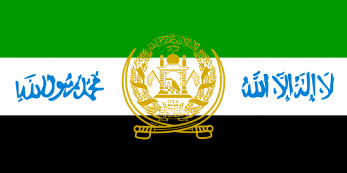 19. Zastava Islamske države Avganistan je korišćena kao privremena nakon pada Nadžibulahovog prosovjetskog režima. Pojavila se u mnogim varijantama od kojih je jedna prikazana ovde. U gornjoj traci je arapskim slovima ispisano "Alahu Akbar", ("Bog je najveći"); središnja traka (sada bela, sa crvenom koja je potpuno uklonjena sa zastave) sadrži Šehadet.