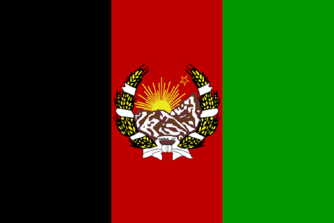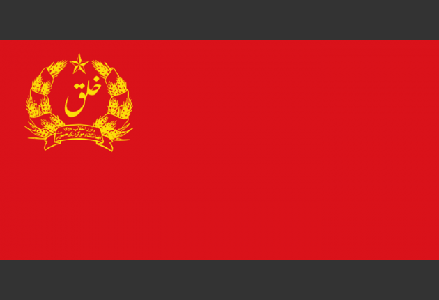 16. Nakon što je frakcija Parčam svrgnula frakciju Khalk tokom sovjetske invazije, zastava Narodne demokratske stranke, sa zupčanikom koji predstavlja industriju i klasom pšenice koja predstavlja poljoprivredu, dodatno je korišćena kao nacionalna zastava. Bila je u upotrebi 1980. godine.