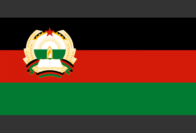 14. Kada je predsednik republike Mohamad Daud Kan ubijen u puču, novi režim pod Narodno-demokratskom partijom Avganistana (PDPA) uspostavio je komunističku državu. Kratak vremenski period, tokom tranzicije, zadržan je isti dizajn zastave, ali bez pečata. Sličnu zastavu koristila je stranka Džunbiš-e Mili koja je kontrolisala autonomni severni Avganistan od 1992. do 1998. godine.
