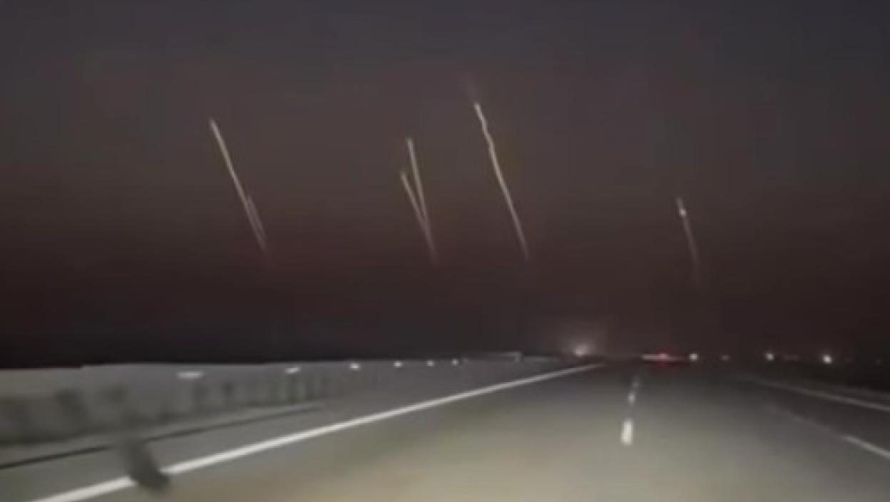 Snimak pokazuje mobilne lansere kako u jednom trenutku ispaljuju projektile, dok sirene i eksplozije odjekuju širom regiona.
