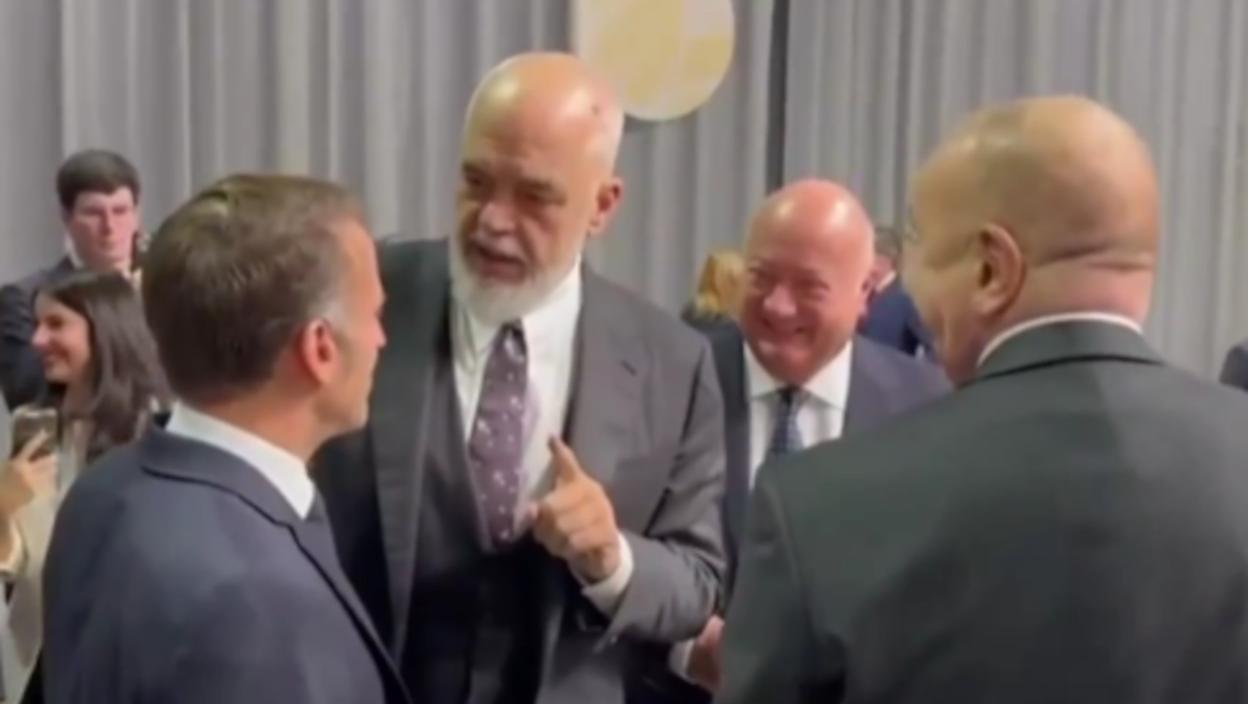 Albanski premijer Edi Rama snimljen je kako se šali sa francuskim predsednikom Emanuelom Makronom i predsednikom Azerbejdžana Ilhamom Alijevim na sastanku Evropske političke zajednice u Kopenhagenu u četvrtak.
