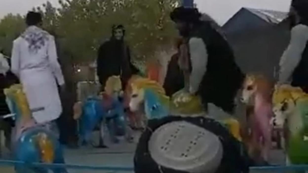 Rojtersov novinar u Kabulu je tvitovao dva video snimka na kojima se navodno vide pripadnici talibana kako se zabavljaju u luna parku.