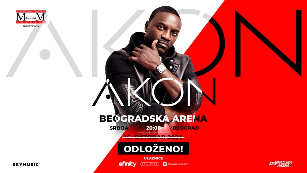 Koncert AKON-a, koji je bio zakazan za sredu 16. oktobar u Beogradskoj Areni odlaže se za početak sledeće godine, a tačan datum biće uskoro objavljen, saopštili su danas organizatori, International Concerts Company MaximuM-a i Skymusic.