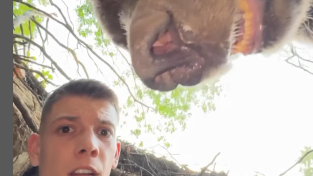 U drugom videu koji je mladi jutjuber podelio vidi se kako je uspeo da se izvuče iz medveđe jazbine, i kako se popeo na drvetu, ali po svemu sudeći ni to nije bilo najidealnije rešenje, jer je medved počeo da se penje ka njemu.