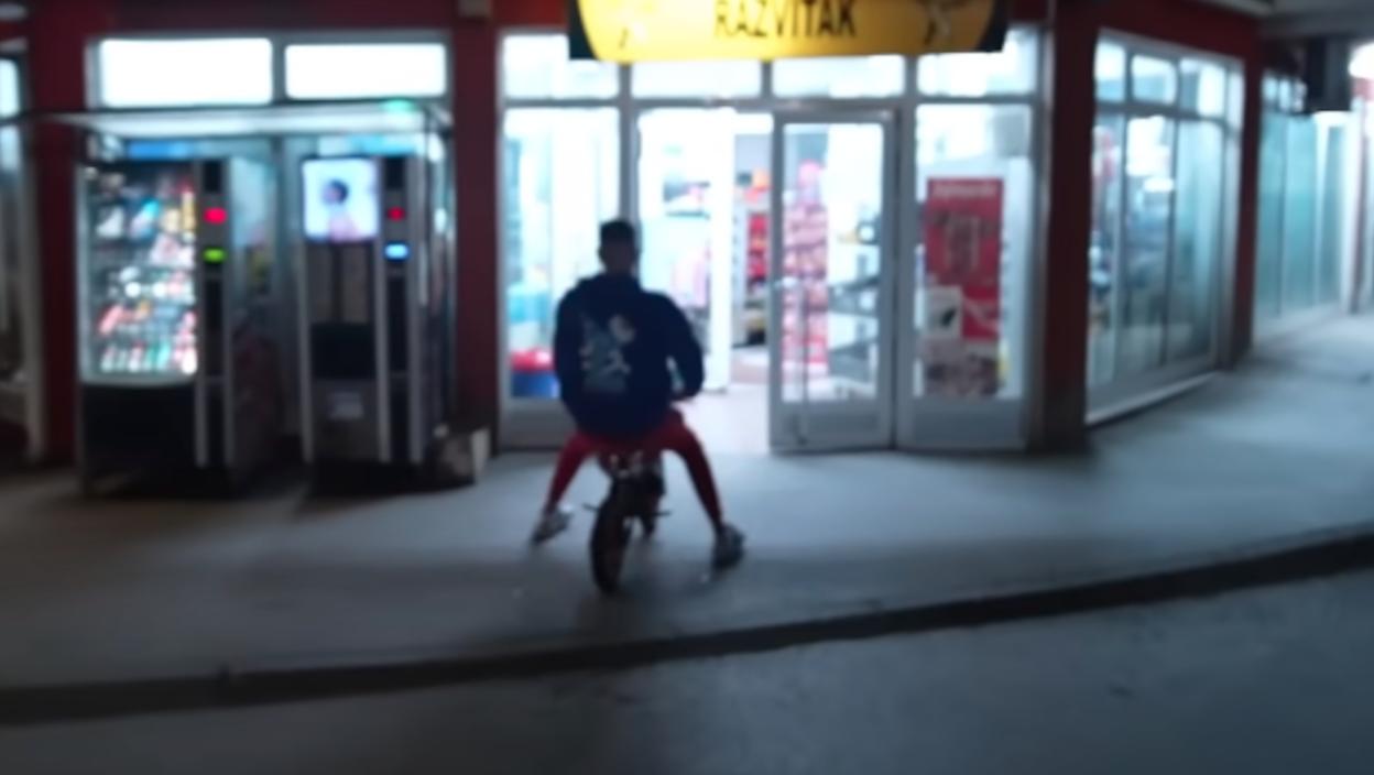 Njega je neko snimao, dok je motorom u brzini uleteo u prodavnicu, što je šokiralo prodavca. On je okrenuo krug, ne mareći čak ni za svoj život.