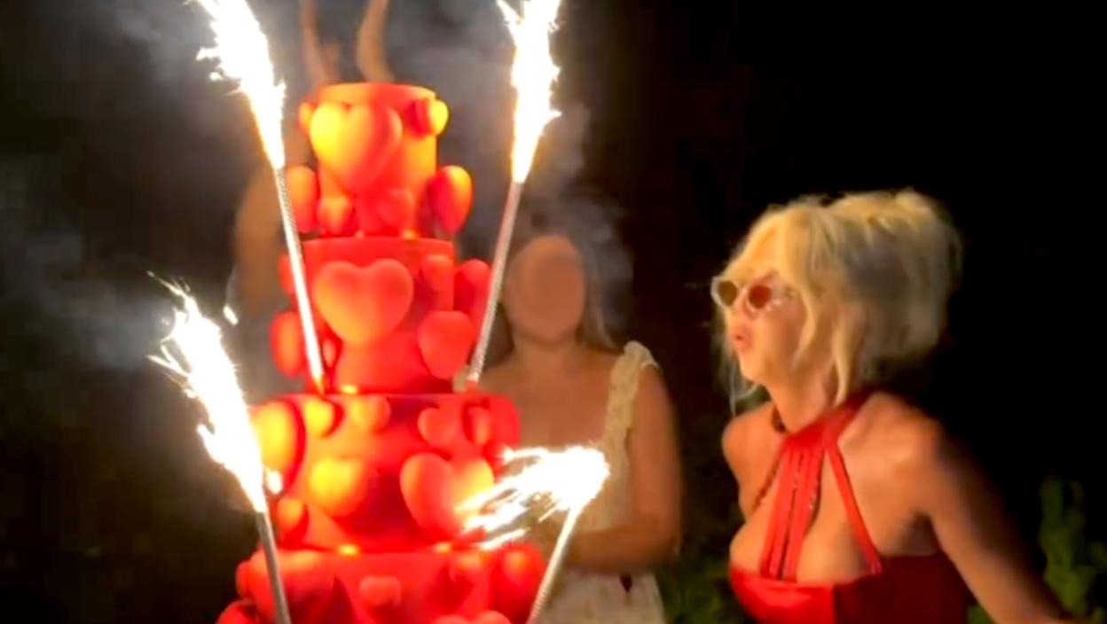 Rođendanska torta na pet spratova, celom površinom bila je ispunjena jestivim srcima i prskalicama, a slavljenica je u društvu bliskih prijatelja i kćerki Atine i Nike Tošić proslavila "divan dan" i izlazak novog spota.