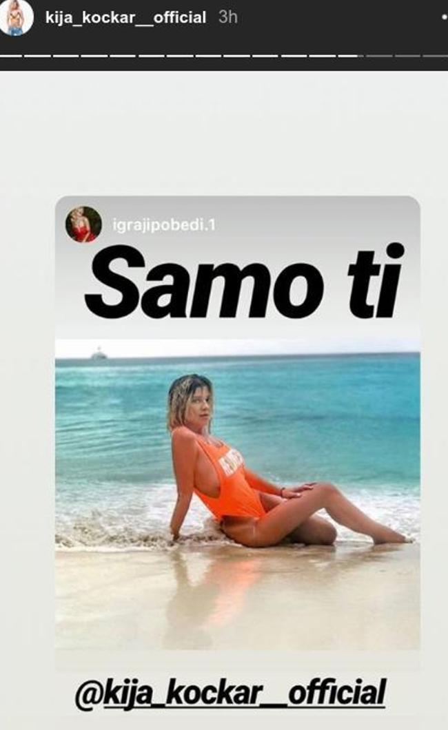Malo pre toga je objavila drugi stori koji smo zapazili. Reč je o fotografiji sa letovanja, gde se ona kupa u narandžastom kupaćem, koji kao da je namerno birala, jer sa prednje strane piše "Voli me", a sa zadnje "Tege ne voli". Na koga je Kija mislila možete i sami da povežete. Ali uz ovu fotografiju Kockareva je dodala i komentar "Samo ti".