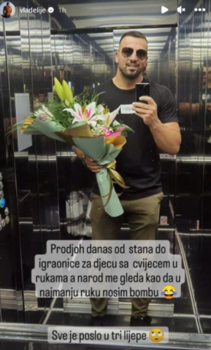 Nakon toga bivši zadrugar privukao je pažnju storijem sa svog Instagram profila. Na fotografiji se vidi on kako drži veliki buket cveća.