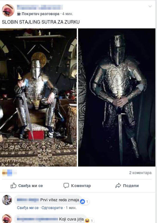 Na račun toga, u fan grupi "Zadruga" osvanuo je Radanovićev navodni stajling za žurku, koji je kao vitezov oklop. Oni su se našalili da mu ni ovo neće pomoći da se spasi od nje.