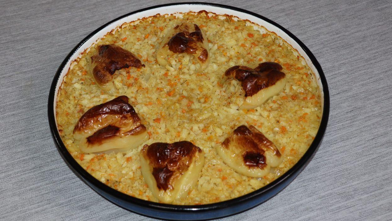 Paprike puniti smesom i ređati u tepsiju.