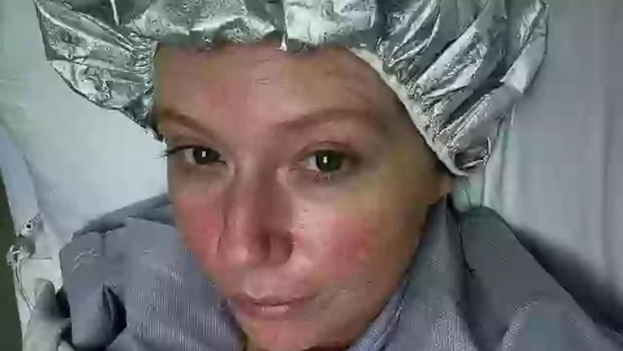 "Počela sam da osećam užasne probadajuće bolove po čelu i vratu. Pretpostavila sam da su to odložene reakcije na zračenje", rekla je.