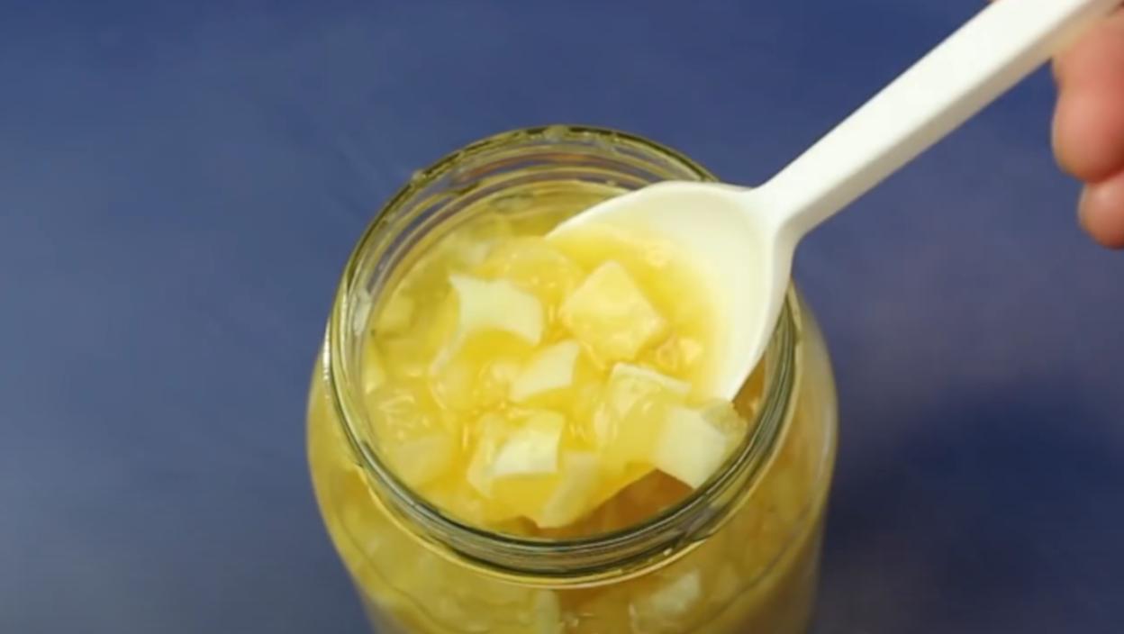 U veću činiju izručite sitno seckan limun i izrendan đumbir. Izgnječite beli luk pomoću prese, pa ga pridružite smesi. Umesto nje možete koristiti i nož kako bi luk bio što sitniji. Dodajte sok od jednog limuna i med.