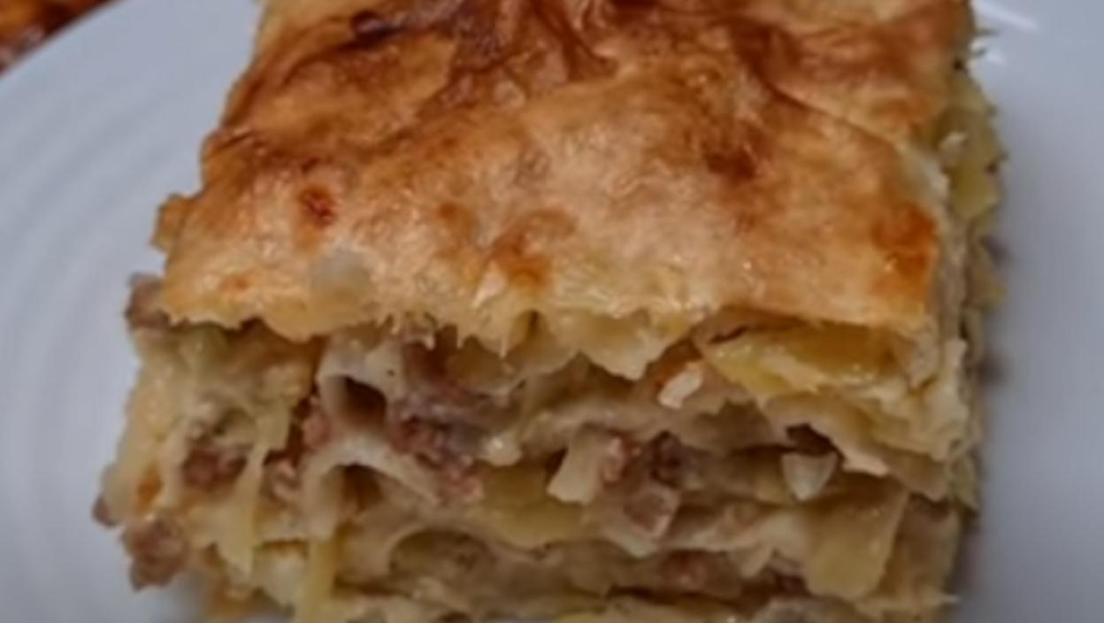 PITA SA MESOM i krompirom - Preliva se jogurtom, dobićete hrskavu i ukusnu koricu, gotova za 10 minuta od gotovih kora