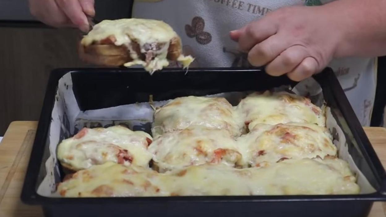 U središnji deo hleba sipajte kečap i sipajte u svaku prženicu. Preko svake prženice stavite i malo rendanog kačkavalja i zapecite.