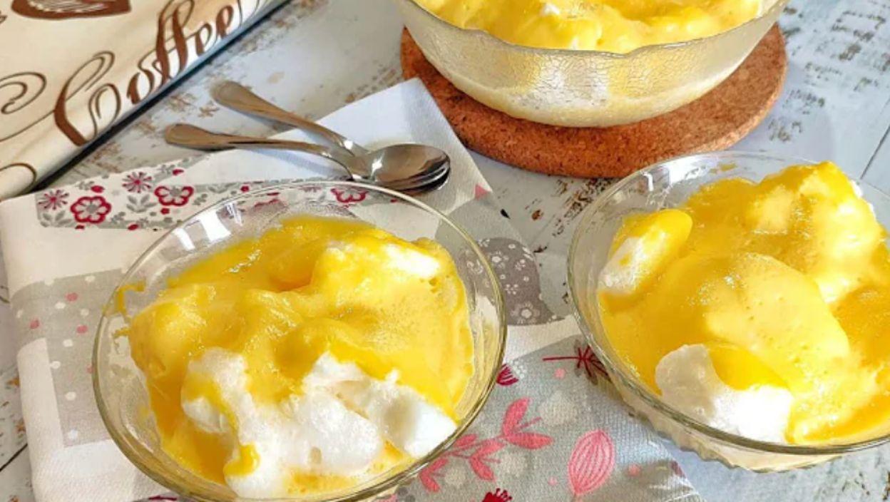 Kada mleko počne da vri, kašičicom se stavljaju umućena belanca u mleko. Kuvaju se 2-3 minuta sa svake strane dok ne postanu čvrste. U drugoj posudi, žumanca se mute sa preostalim šećerom. Kada se mleko skuva, malo se ohladi i postepeno se dodaje u smesu od žumanaca, mešajući neprekidno da se ne bi zgrušalo.
